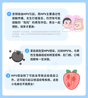 接种HPV疫苗可以有效预防宫颈癌。但是,它不单单只预防宫颈癌。对男性来说,接种HPV疫苗可以预防阴茎癌、肛门癌、口咽癌等多种癌症,也能预防尖锐湿疣等疾病。