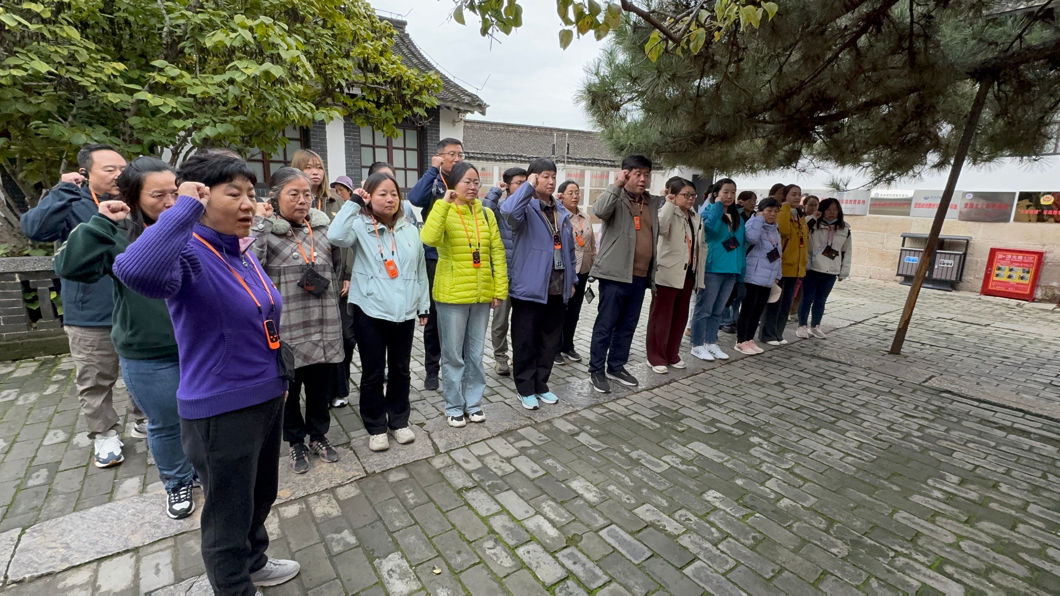 随后,队伍前往位于涉县赤岸村的一二九师司令部旧址。这片孕育了 “不怕困难、不怕牺牲,勇于担当、勇于胜利” 的 “一二九师精神” 的热土,深深触动着每一位参观者的心灵。在司令部旧址院内,面对鲜红的党旗,在党总支书记贾红英的领誓下,全体党员庄严地举起右拳,重温入党誓词:“我志愿加入中国共产党,拥护党的纲领,遵守党的章程……” 铿锵有力的誓言在院落中久久回荡,字字千钧,表达了全体党员不忘初心、牢记使命,为党的事业奋斗终身的坚定信念和决心。