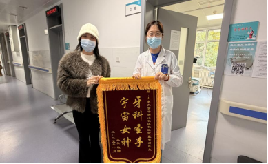 “张大夫真的特别耐心、特别细致!本来看到那么深的蛀牙我很紧张,但张大夫的技术真的很好!现在牙齿补好了,吃东西完全没问题,真的特别感谢她!”这位同学在赠送锦旗时激动地说道。