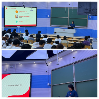 讲座中,李辉主任围绕案例分析艾滋病流行现状,感染的底层逻辑,综合防控策略、暴露后阻断方式、性健康知识等主题展开讲解,结合真实案例剖析感染风险与防护要点,重点澄清“日常接触传播”“无法治愈即放弃治疗”等认知误区,并针对师生关心的“HIV检测渠道”“药物预防有效性”等问题现场答疑。线上线下近300名师生聆听,现场互动频繁,不少同学表示“讲座内容实用、案例生动,彻底消除了对艾滋病的恐惧,学会了科学防护方法”。